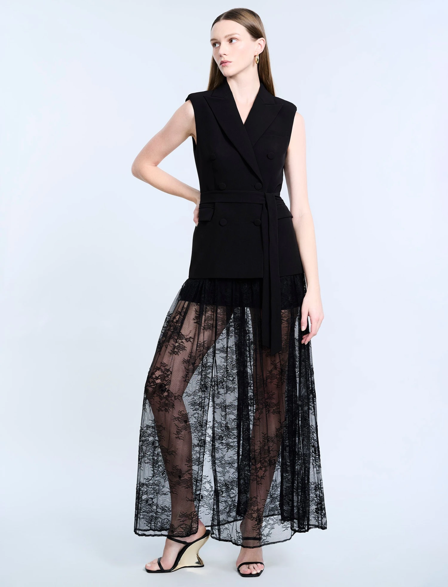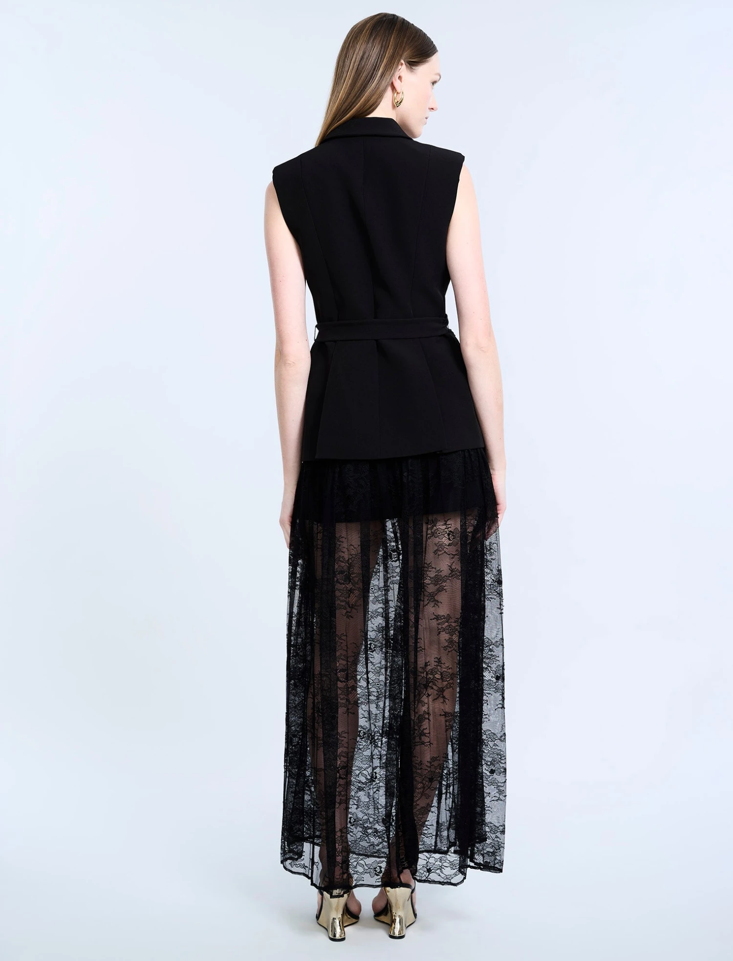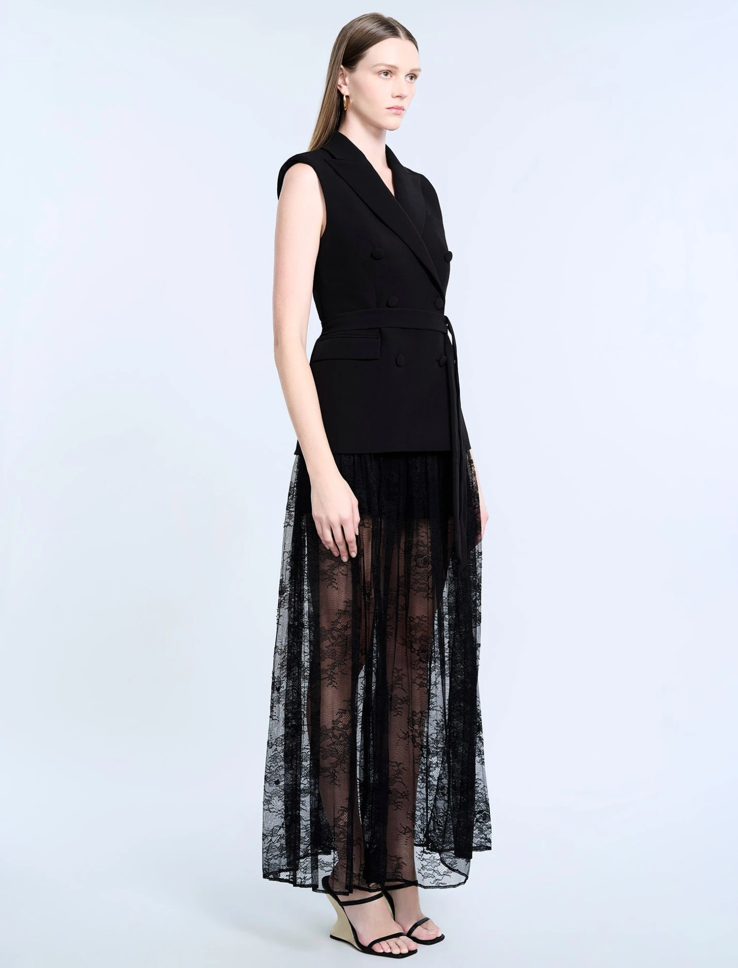 Sleeveless tailored vest crafted from structured suiting fabric for a sleek, refined edge.