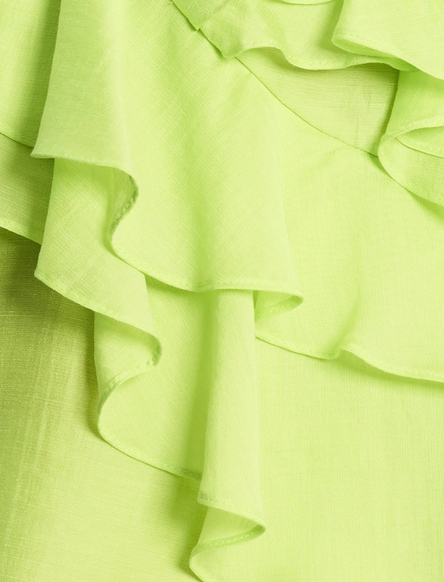 Chic cami top crafted from an airy linen blend for a lightweight, effortless feel. Topped with delicate spaghetti straps and cascading ruffle details.Done in a relaxed silhouette that drapes beautifully. Finished with an asymmetric hem and adjustable straps for a customizable fit.