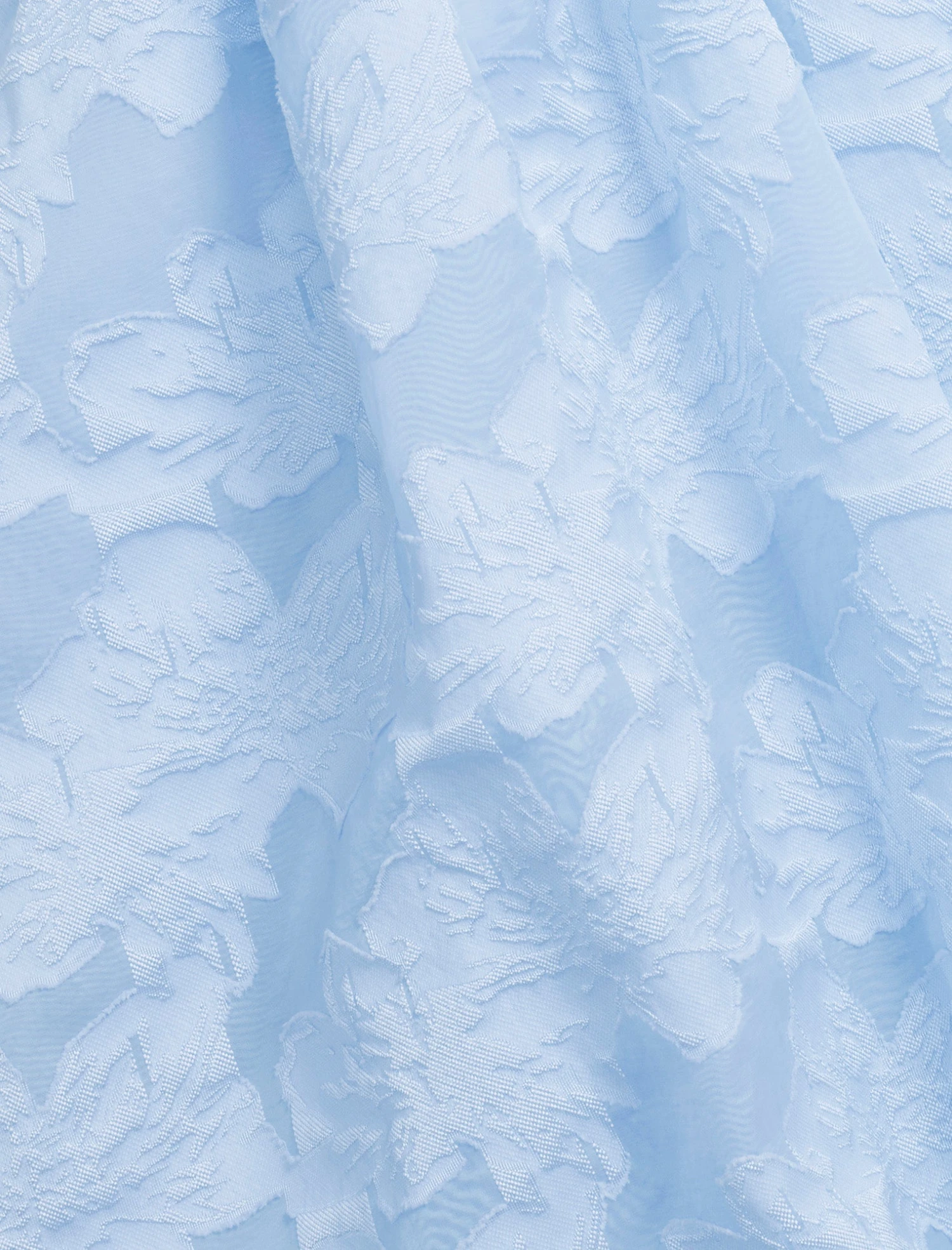 Balloon mini dress crafted from floral jacquard with a structured, voluminous silhouette.