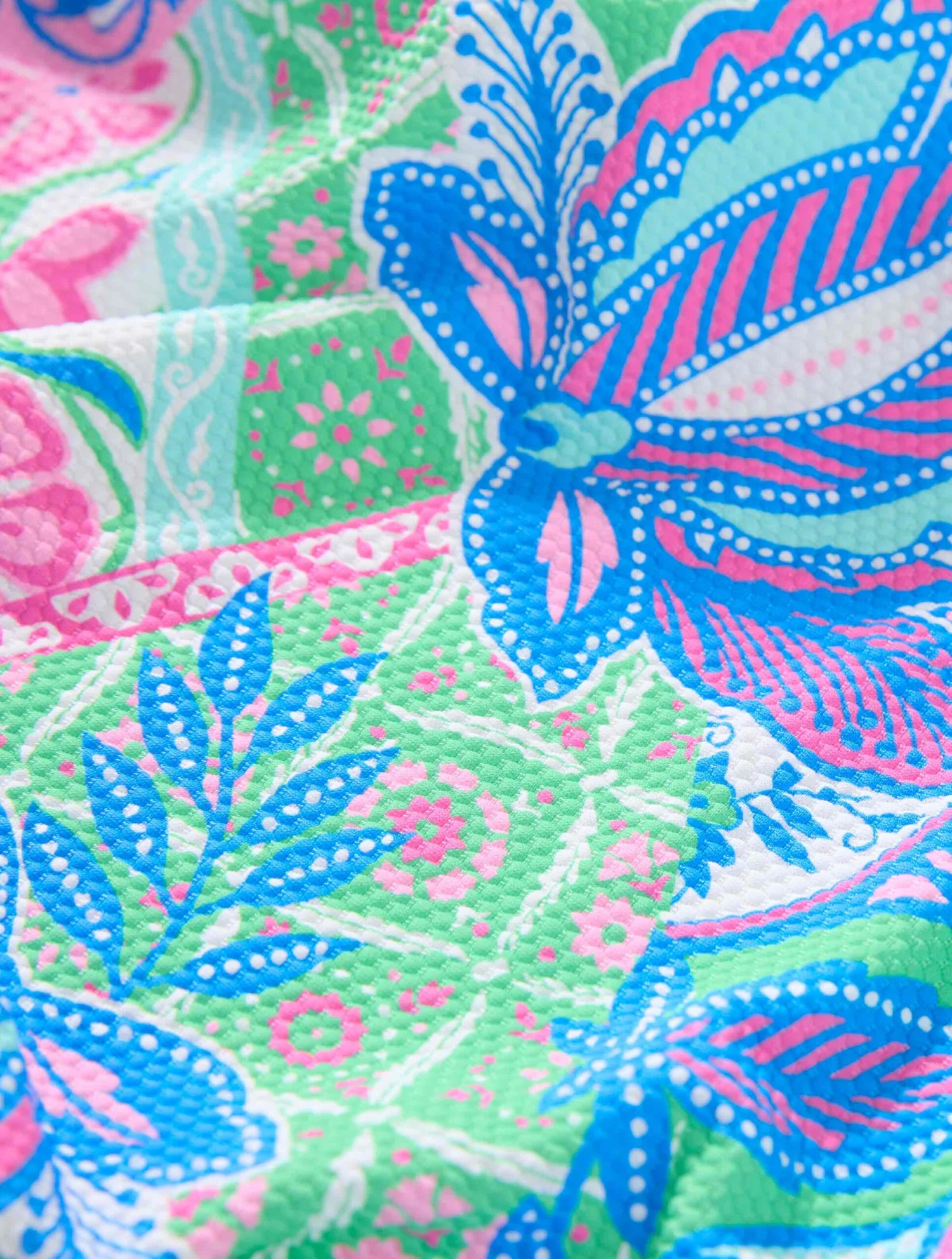 Hit the sand in style with a tankini top. A fitted silhouette with v-neckline is a flattering style with a fashionable flair. A soft, textured, pique fabric elevates your swim style with a vibrant paradise inspired print.