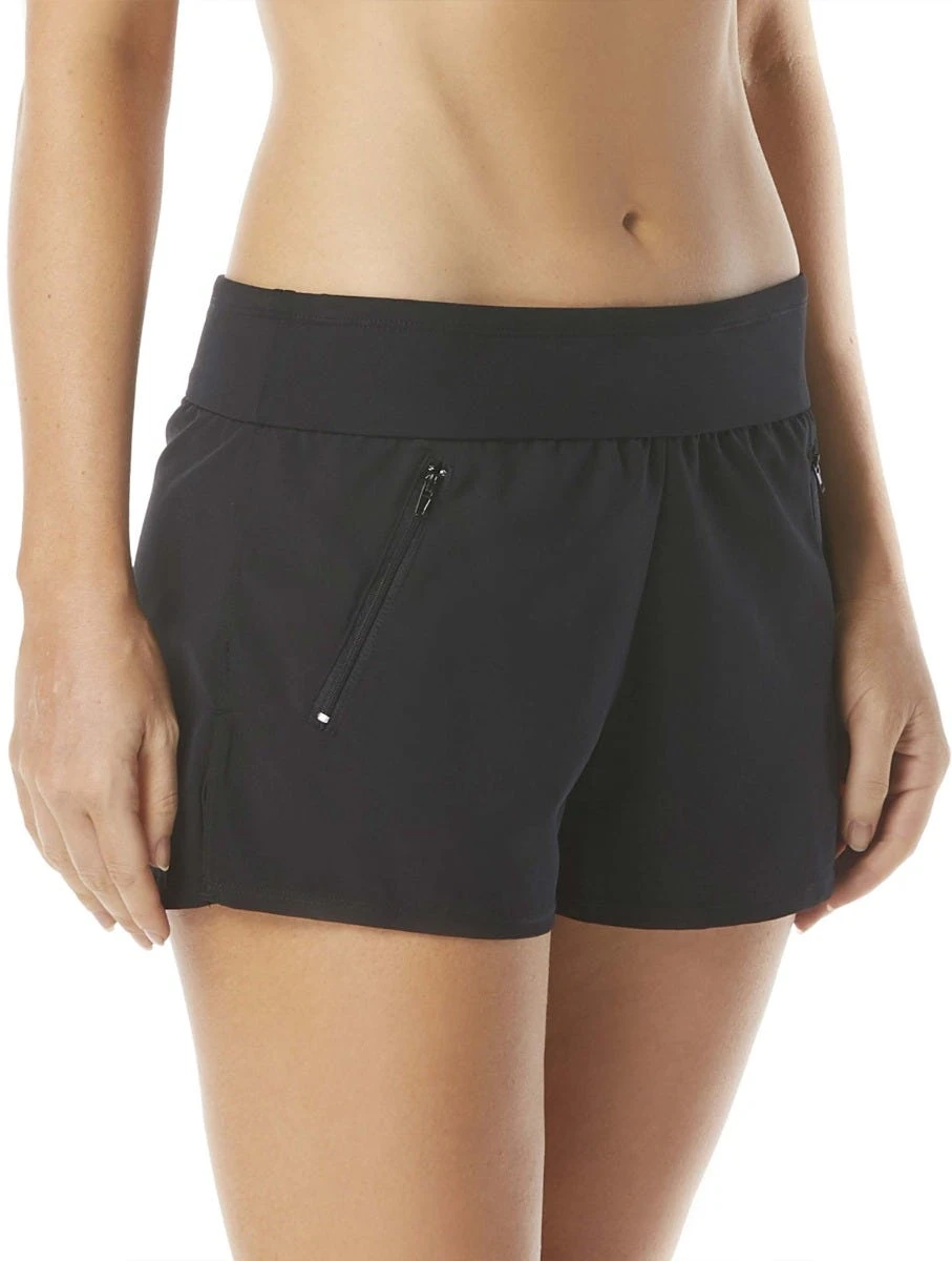 Go from swim to gym in the Beach House April Woven Beach Short. The soft adjustable waistband and figure-hugging silhouette create a no-slip fit short for an extremely comfortable fit perfect in and out of the water.
