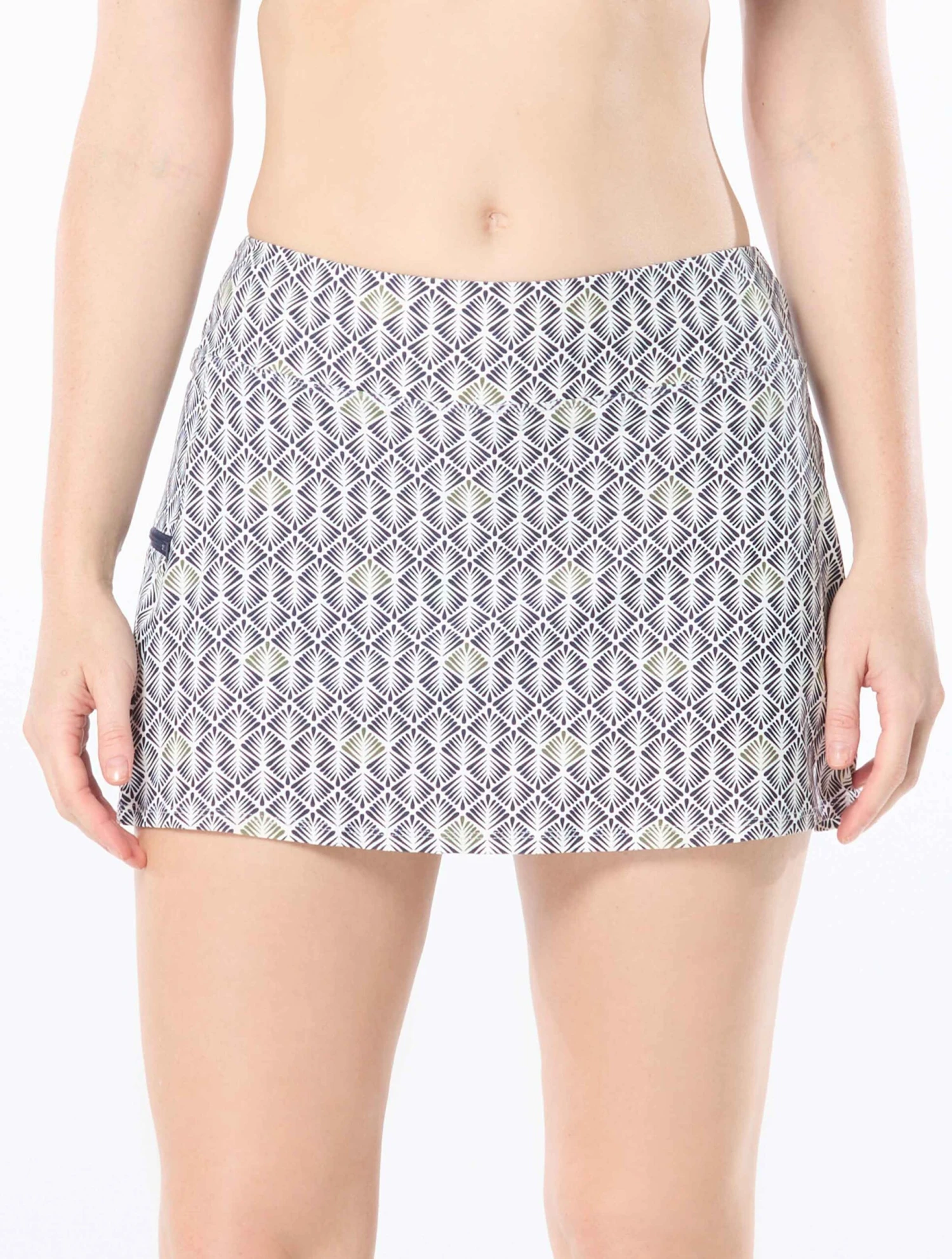 The Beach House Emma Swim Skort is the swim bottom you’ll want to wear … everywhere! Feel confidently covered in this figure flattering fit with a no dig, comfort waistband and comfortable shorts underneath. An abstract yet alluring blend of blues are paired with a functional zippered pocket that provides room for cash or a key, no purse needed!