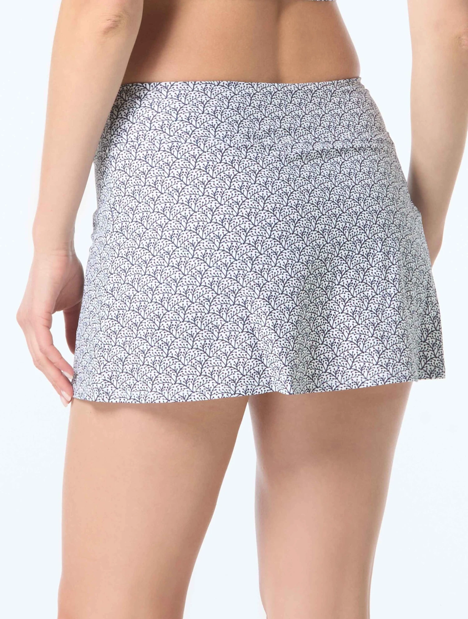 Feel confidently covered in this flattering swim skirt with a no dig waistband and comfortable shorts underneath. A functional zippered pocket provides room for cash or a key, no purse needed! A fun, abstract, tropical inspired print is perfect to mix and match with a variety of swim top options.