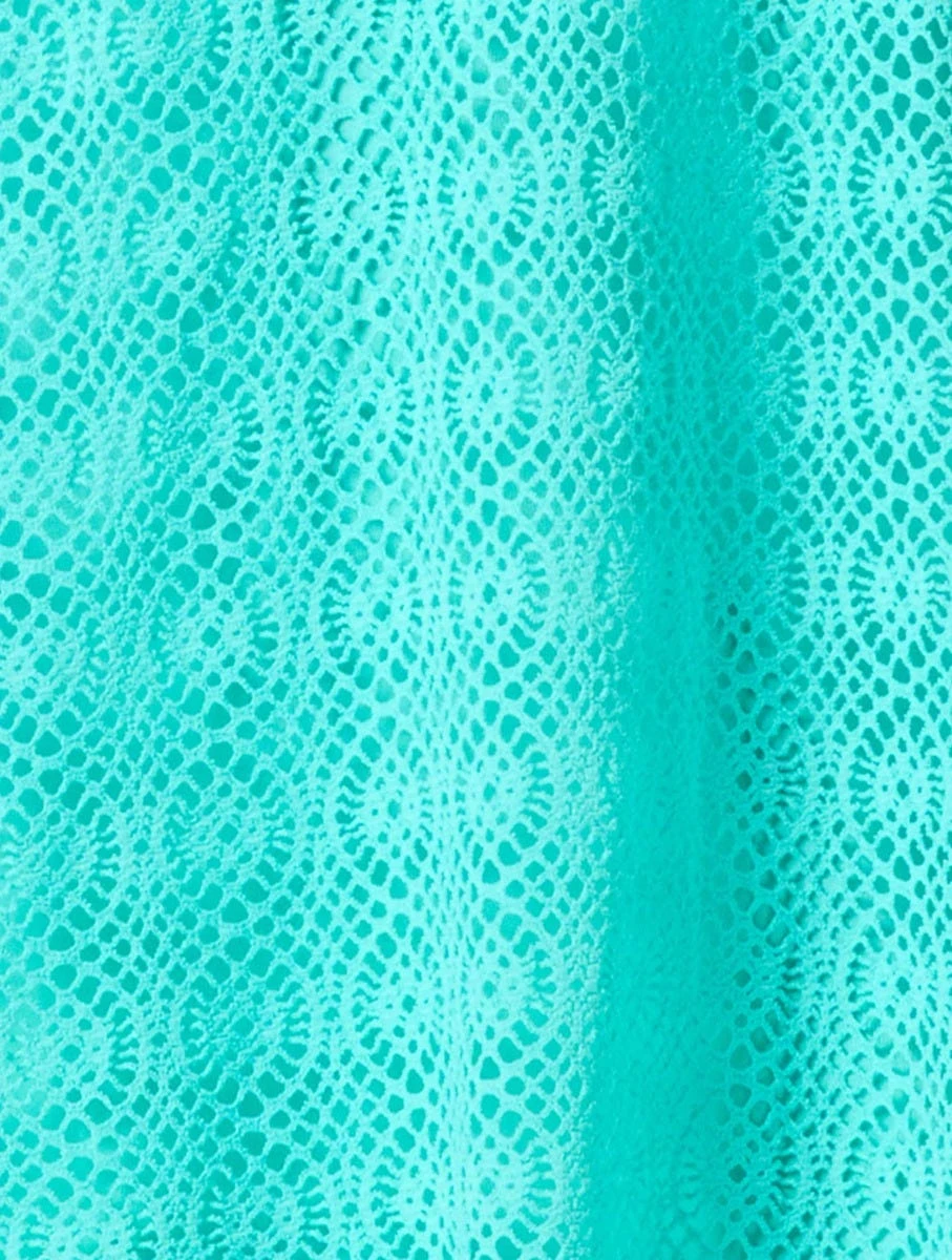 Feel the fresh air in a crochet tankini top with asymmetrical sharkbite hem. Designed with soft, sunburst inspired crochet fabric that can be worn in and out of the water.