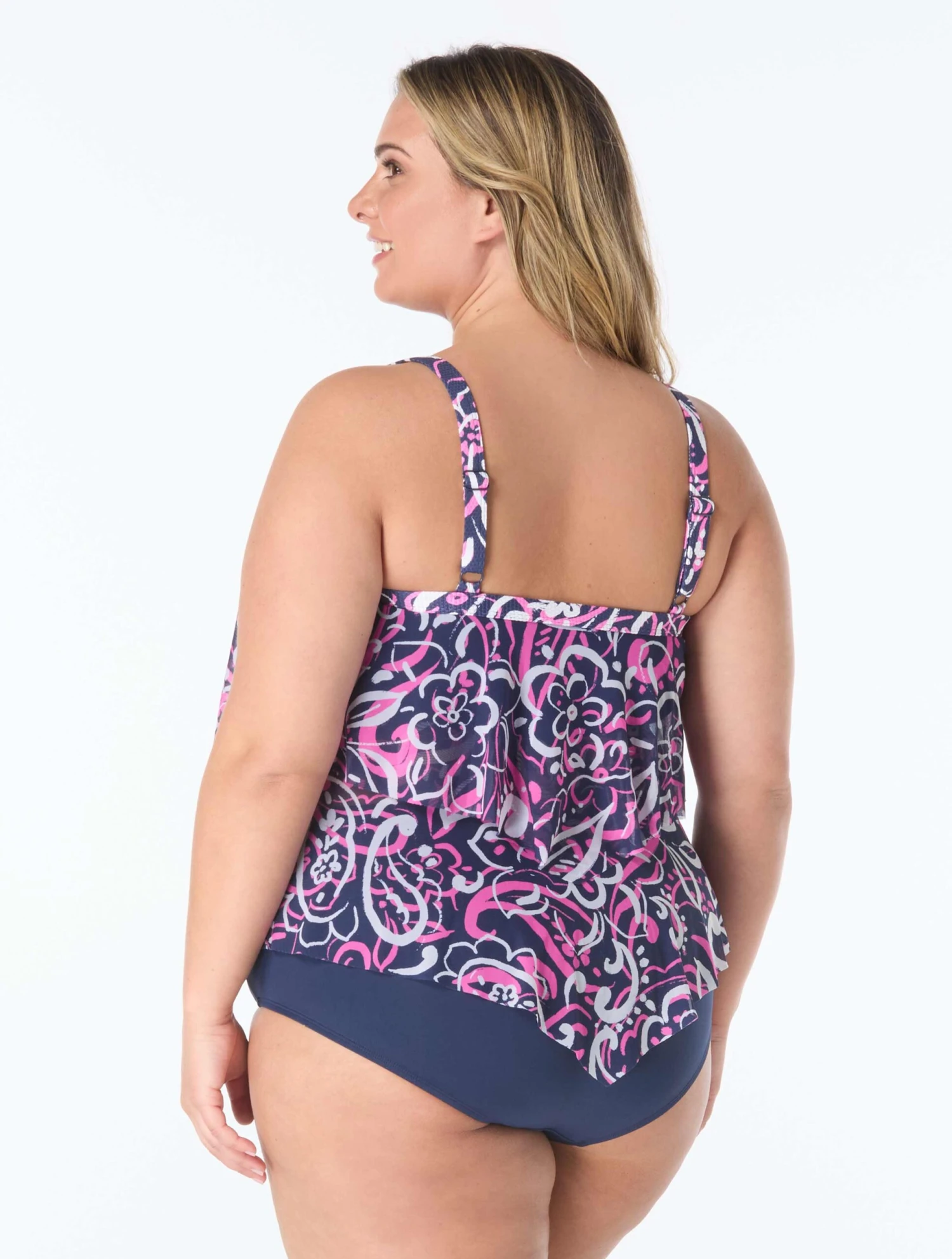 Layers of sheer mesh and lightweight fabric offer breathability while a paisley print adds feminine fashion to this plus size tankini. Pair this with a solid bikini bottom, swim skort or lightweight shorts for plenty of styling options on vacation.