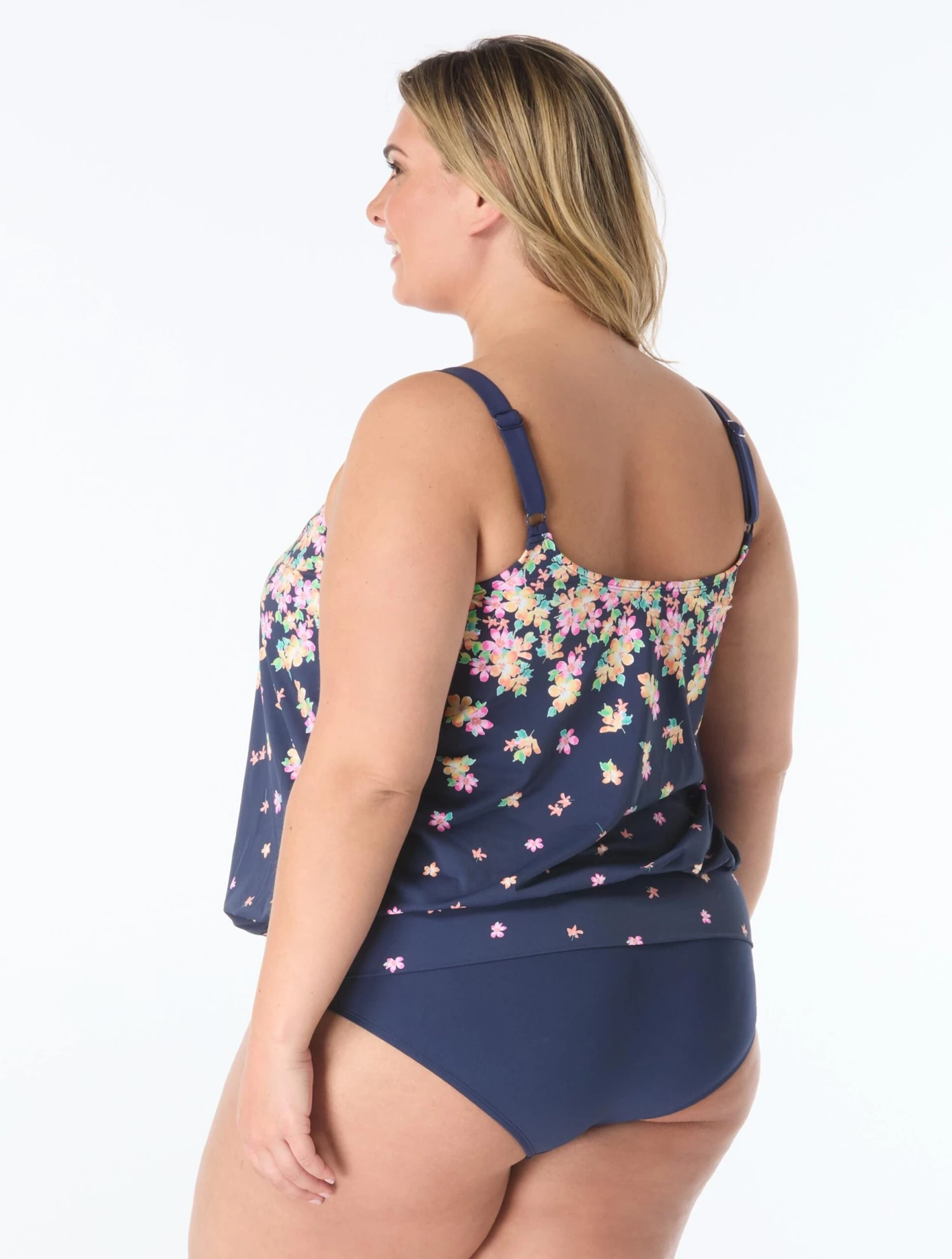 This plus size tankini top gives you feminine flare in a curve-contouring style. Soft cups provide shapely support while adjustable wide straps offer a customized, perfect fit! Colorful florals add a fun print to the neckline.