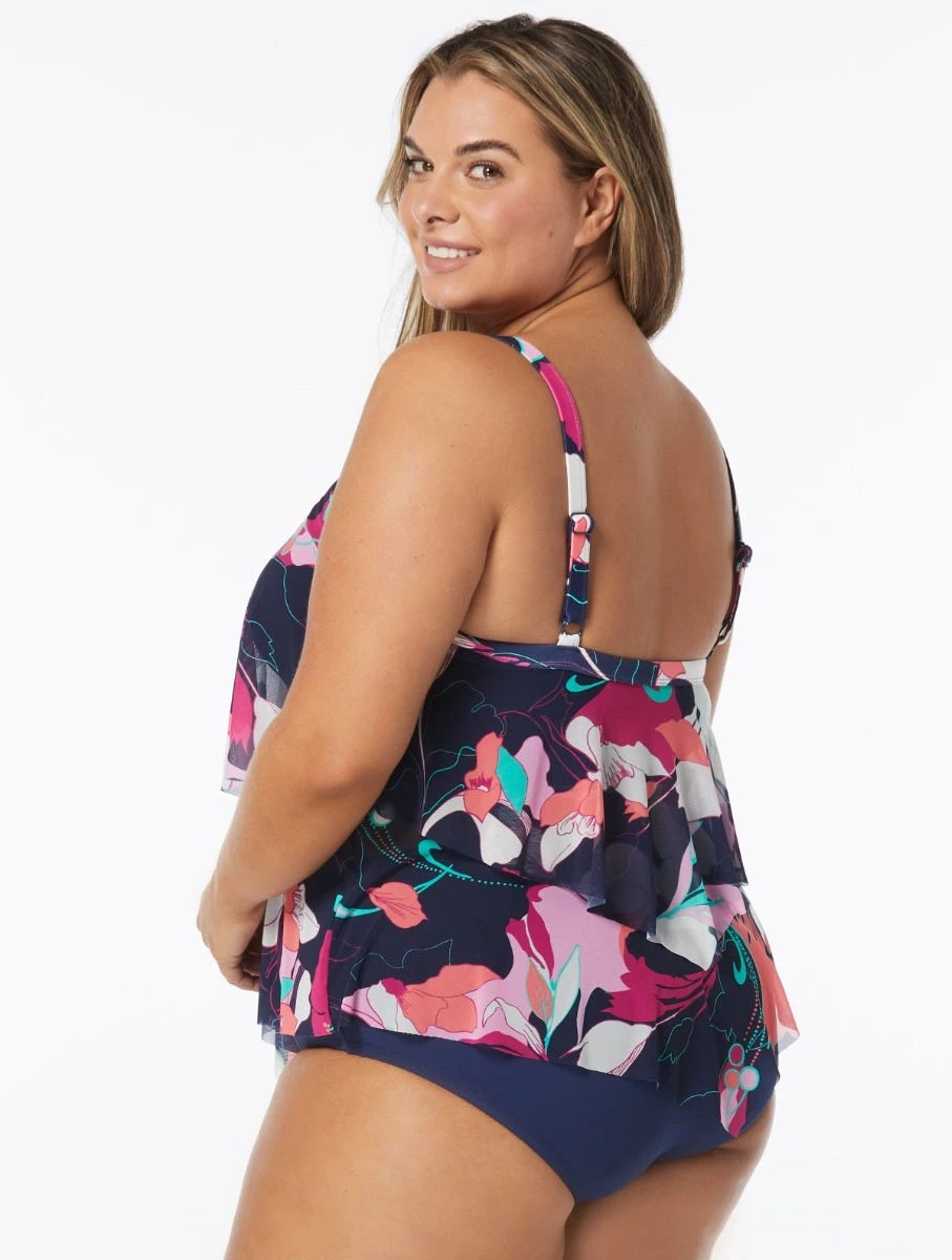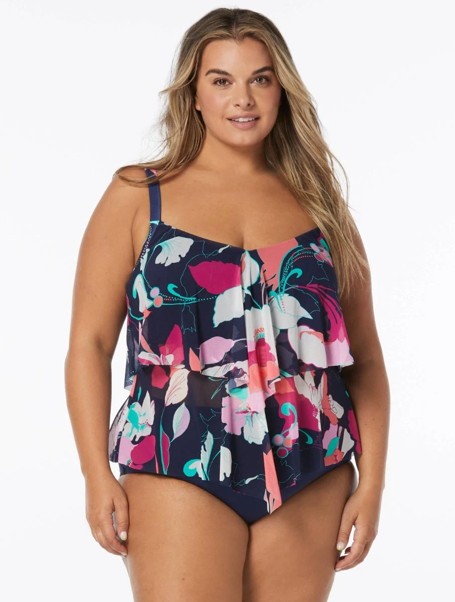 Stay trendy this season in the Beach House Swim Plus Size Portia Mesh Tankini Top. Featuring layers of lightweight, sheer mesh fabric for breathability in an abstract floral print, adding feminine fashion to your swimsuit collection.