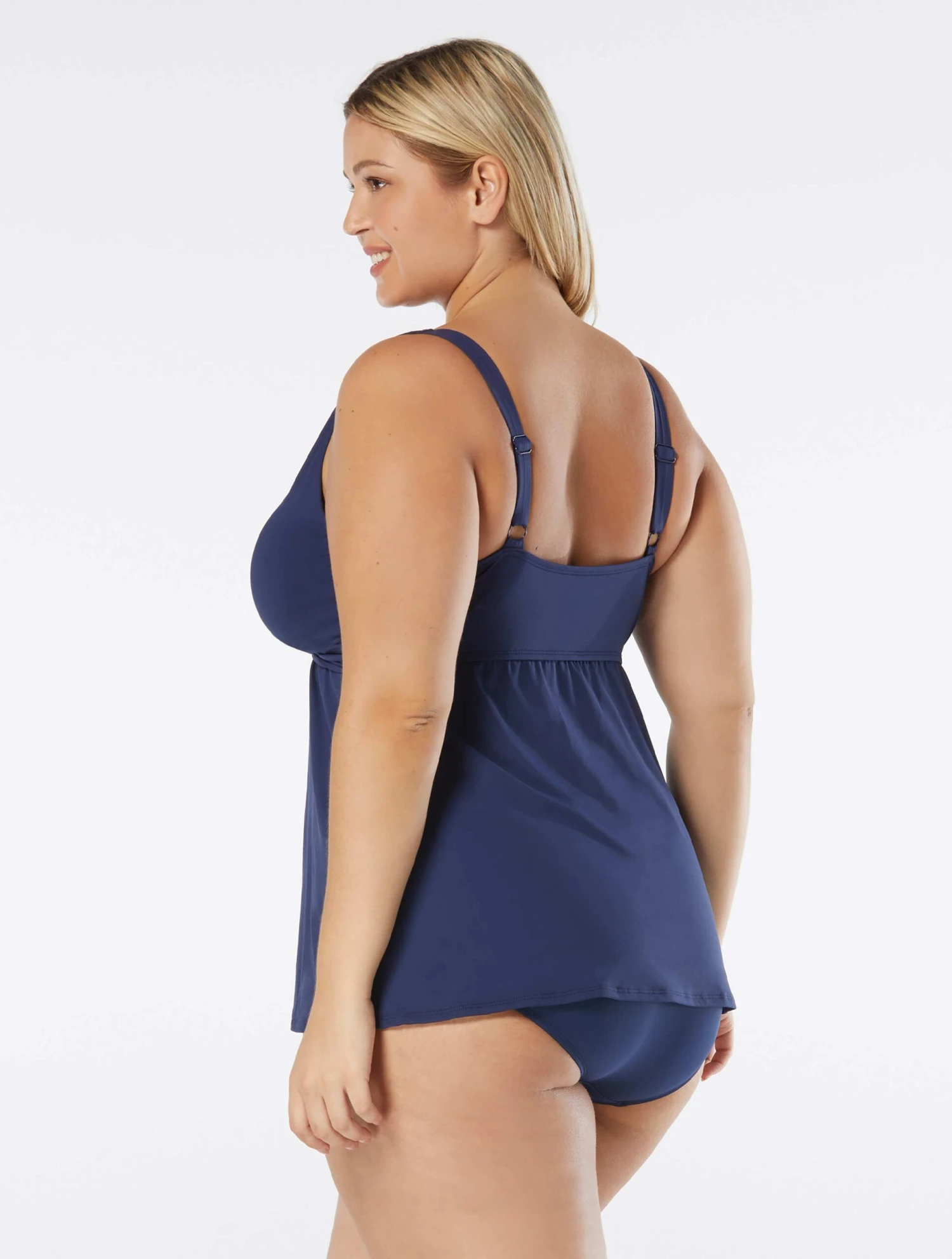Flirty and fun, the Beach House Swim Plus Size Willow Underwire Twist Tankini Top flatters your body with a flowy silhouette in bold solid colors and twisted details. This flattering swimsuit provides underwire and removable soft cups for shaping, adjustable straps for a customized fit and feminine style. Beach House swimwear is designed with high-end fabrics that bend with you for extra comfort, easy fit and shape retention.