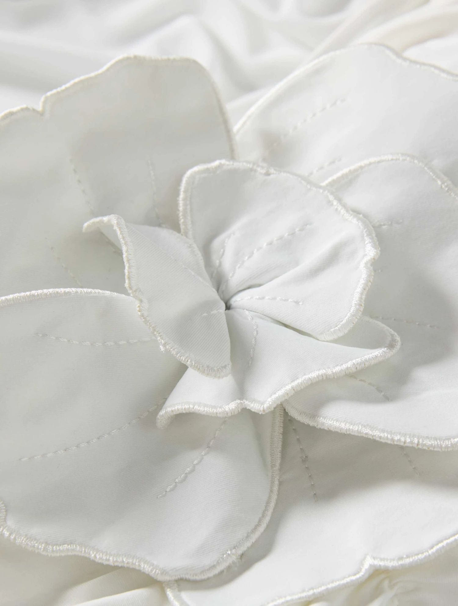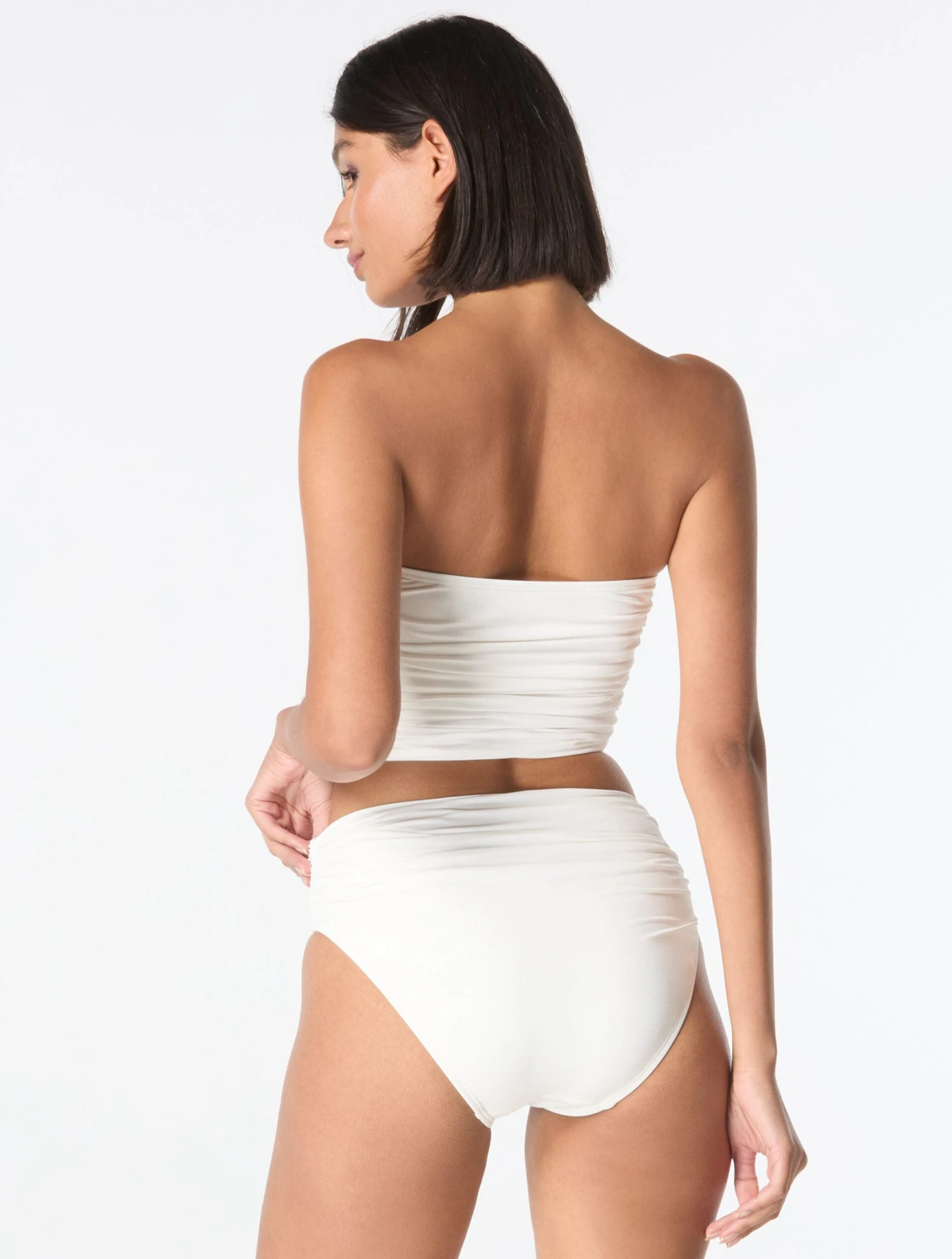 For the days you want a little more coverage than a bikini, this bandeau adds a little more length. A bold floral applique adds a statement to the neckline. Allover shirring flatters your figure. Pair this with a bikini bottom or wide leg pants for beach to brunch.
