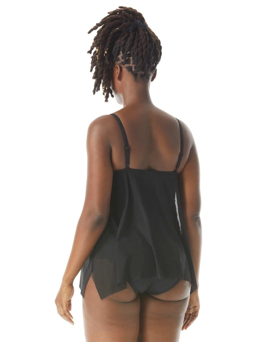 Breezy and light, the Coco Reef Current Bra Sized Mesh Layer Flyaway Hem Underwire Tankini Top offers fashionable, full-coverage in bold colors. The mesh overlay creates a cool, layered look for a fresh take on the tankini silhouette. Underwire and adjustable straps offer a shapely, customized fit, so you can hit the beach in comfortable and stylish swimwear.