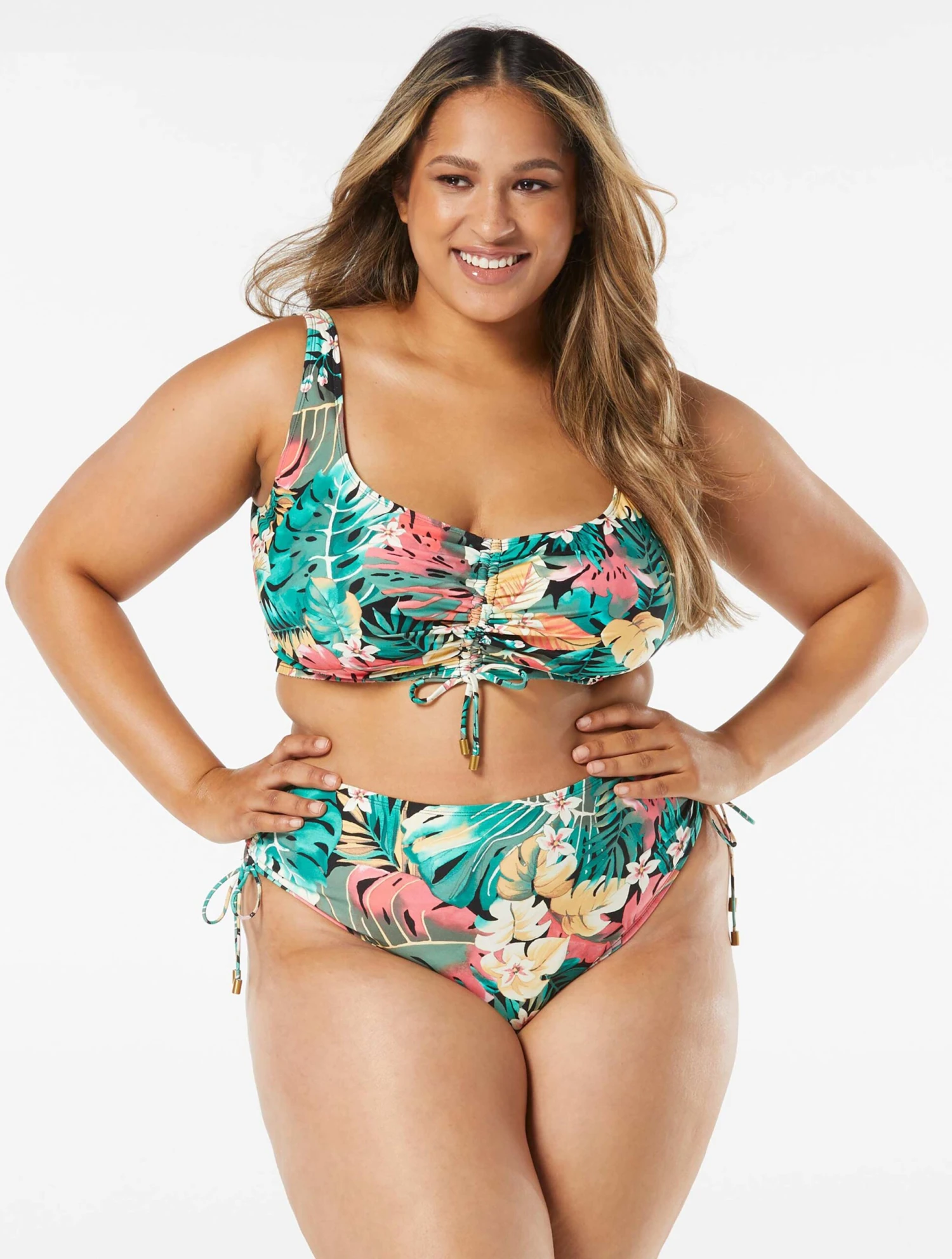 - Ruching In Front With Adjustable Drawstring For Coverage