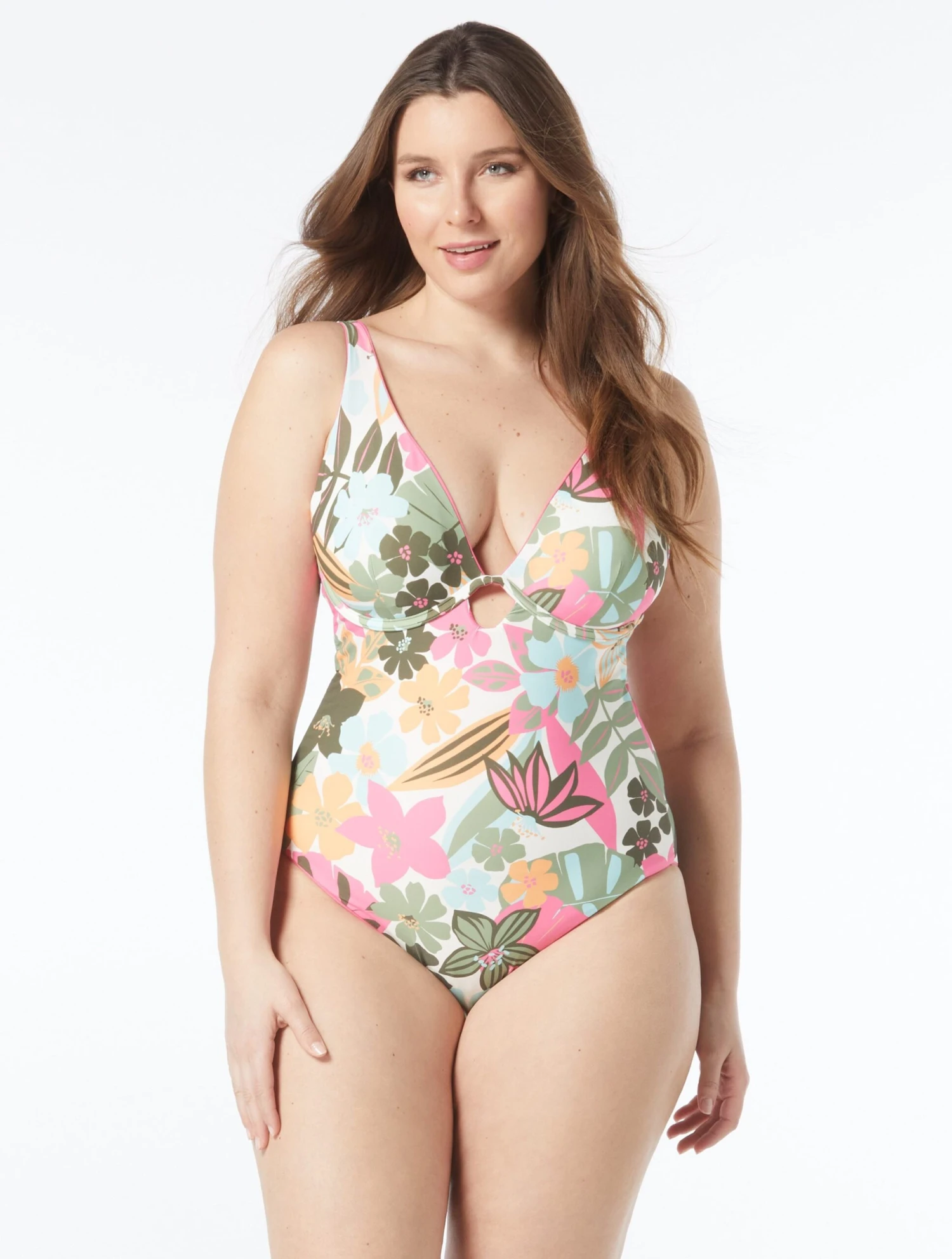 Want two swimsuits in one? This reversible one piece swimsuit is the perfect piece! Form fitting (but not too tight) with tummy control that flatters your figure. Splashed with a lush and luxe floral print on one side and a coordinated pink on the other. Two sides makes it super easy to switch up your vacation style.
